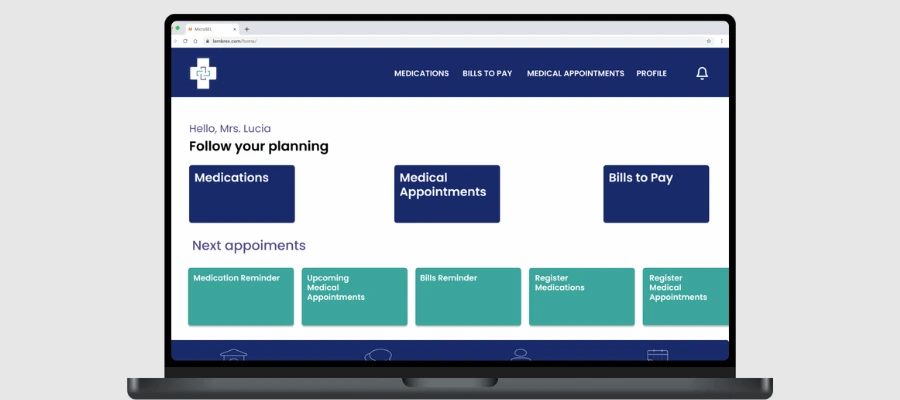 Lembrex é um aplicativo focado em pessoas idosas e cuidadores, visando autonomia e tranquilidade na gestão da saúde e organização diária, com lembretes para medicamentos, consultas e compromissos financeiros.